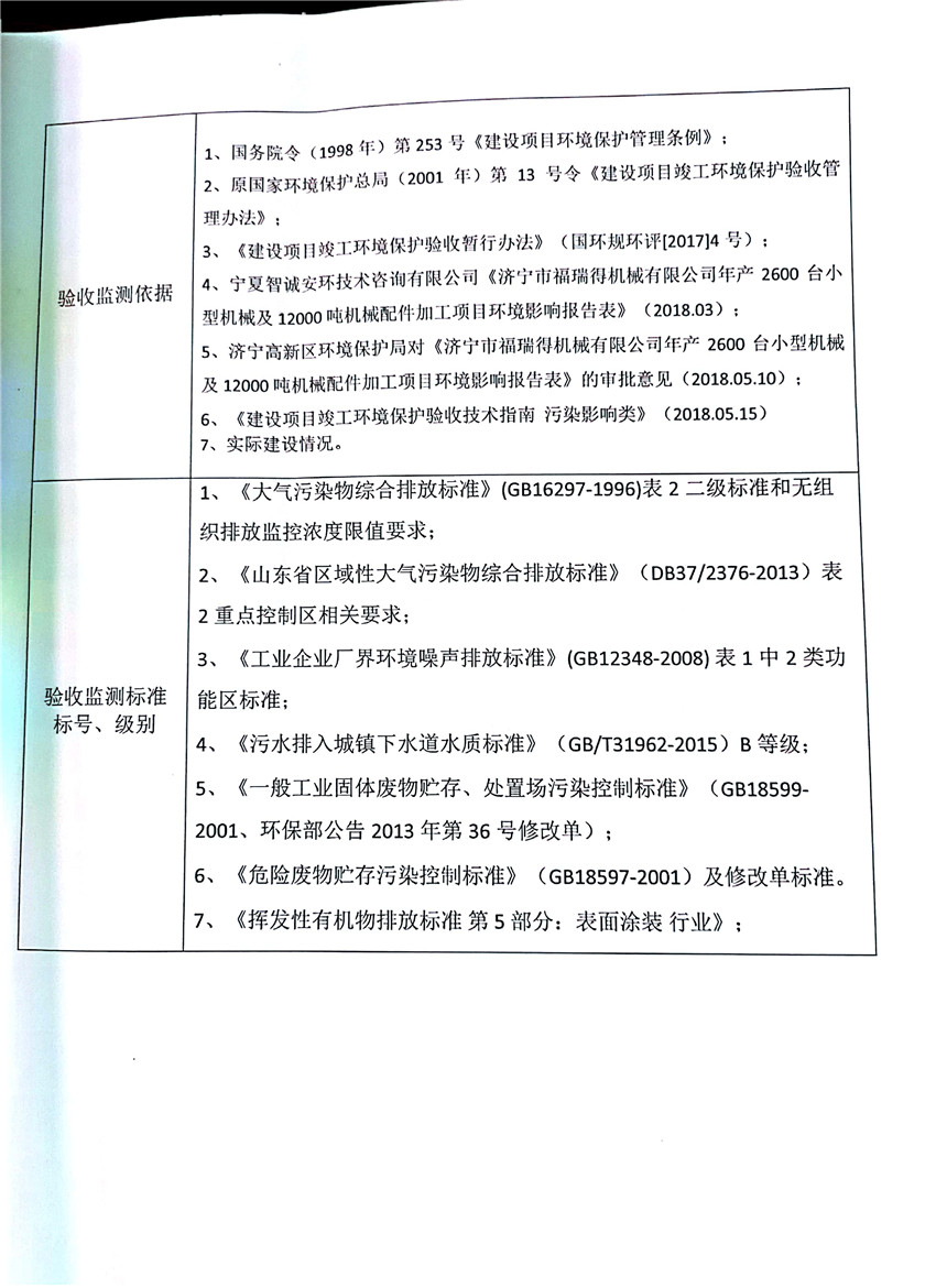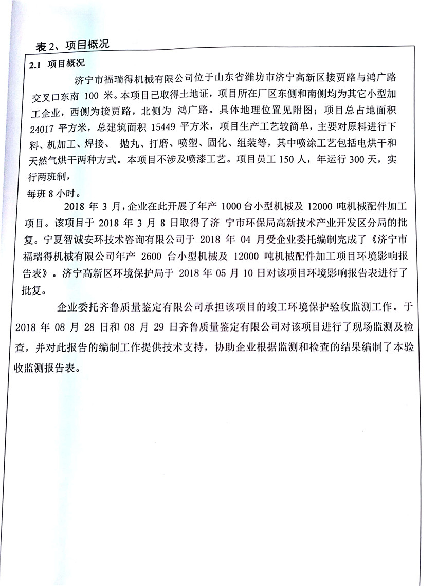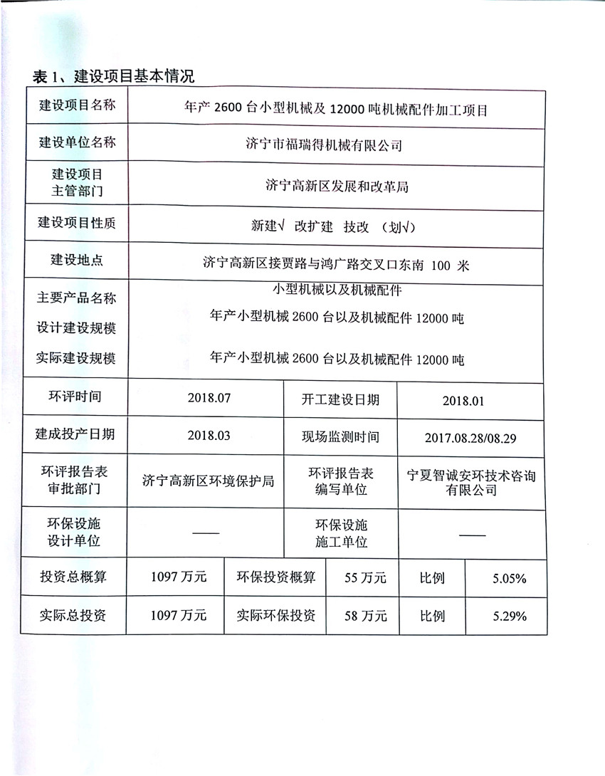 濟(jì)寧市福瑞得機(jī)械有限公司年產(chǎn)2600臺(tái)小型機(jī)械及12000噸機(jī)械配件加工項(xiàng)目(廢氣、廢水)竣