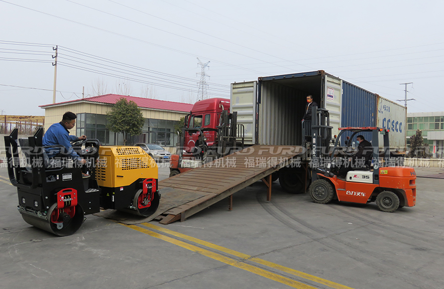 福瑞得機械13臺雙鋼輪壓路機打包裝車出口阿根廷