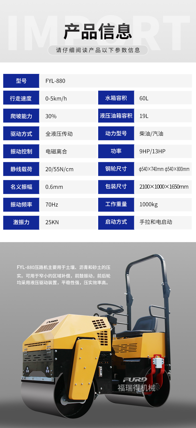 FYL-880 1T全液壓振動(dòng)壓路機(jī)