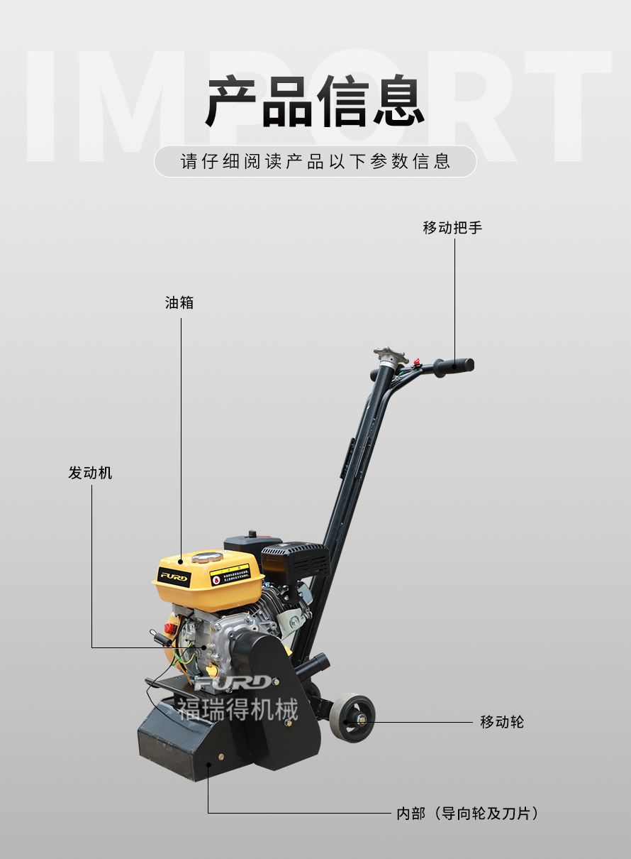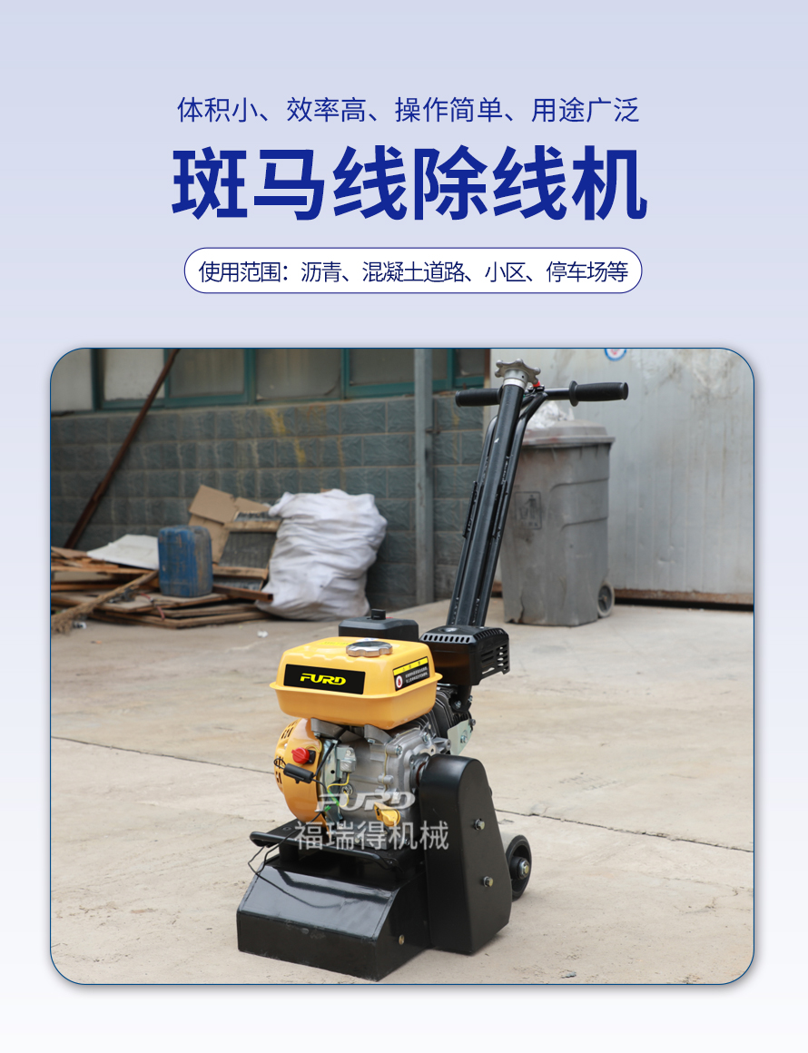 特點(diǎn):體積小、重量輕、機(jī)動(dòng)靈活、工作效率高、操作簡(jiǎn)單。 適應(yīng)范圍:主要用于瀝青道路、混凝土道路、物業(yè)小區(qū)、機(jī)場(chǎng)、停車場(chǎng)等地的標(biāo)線清除。