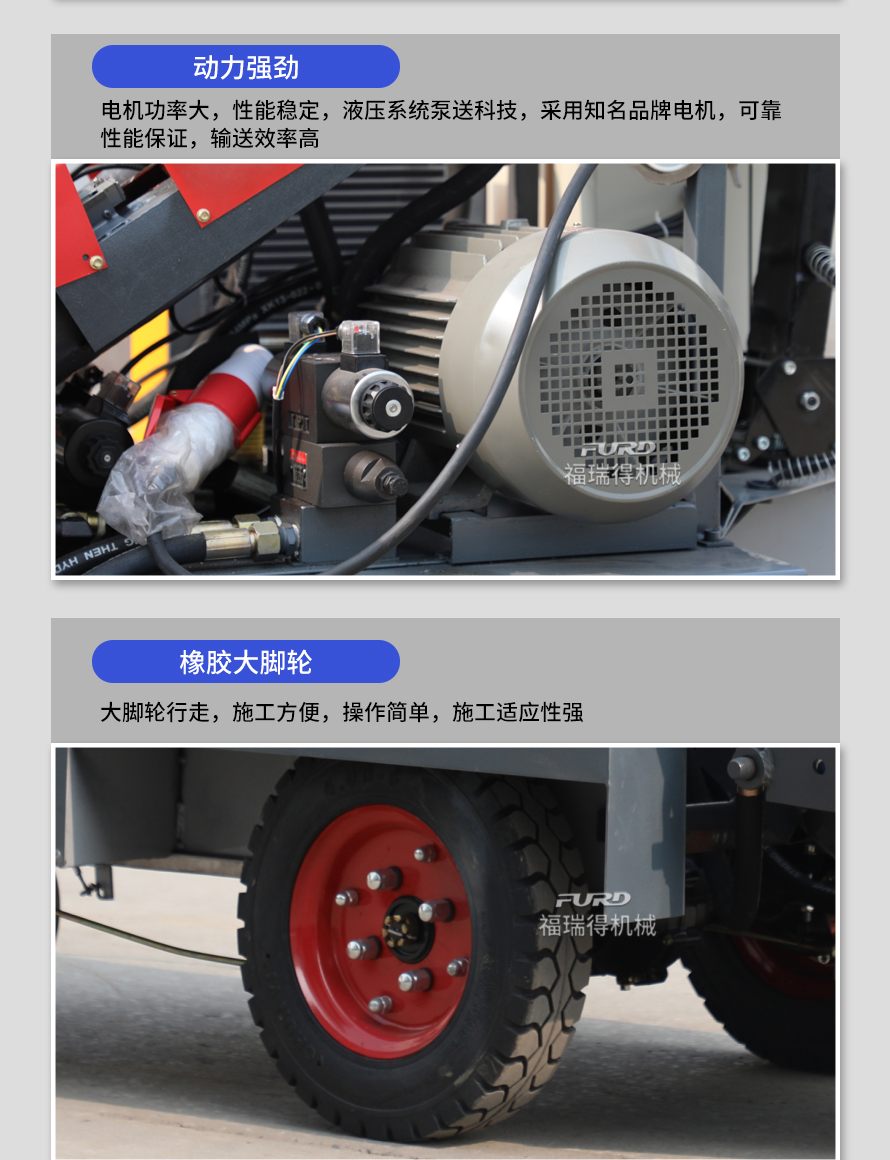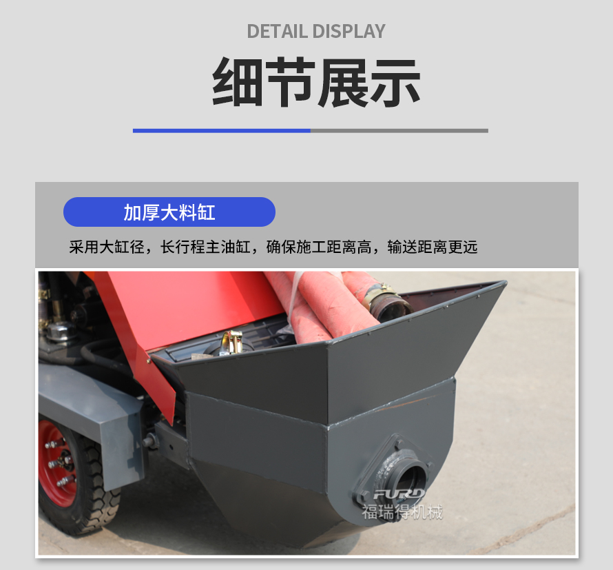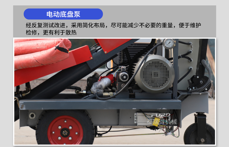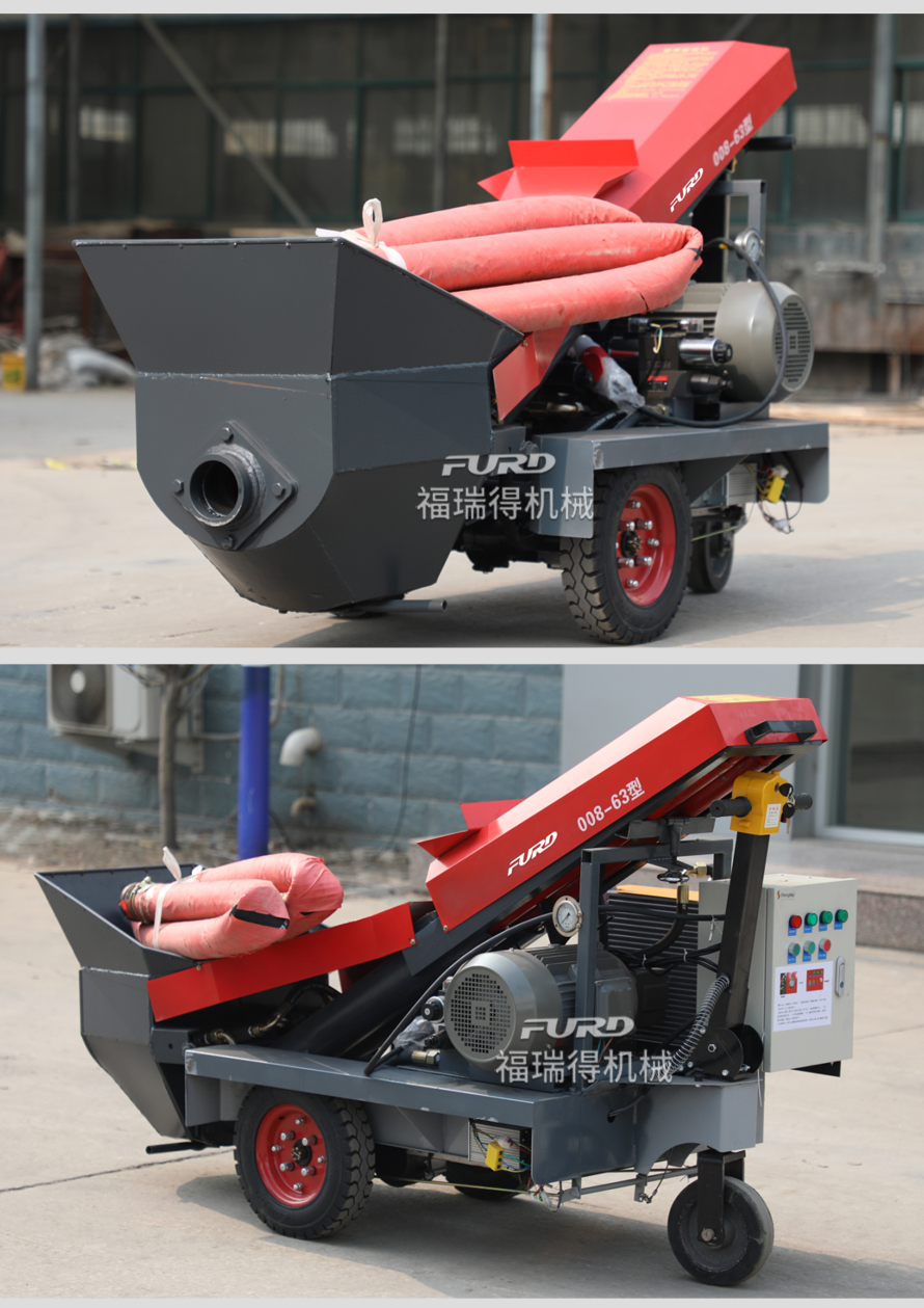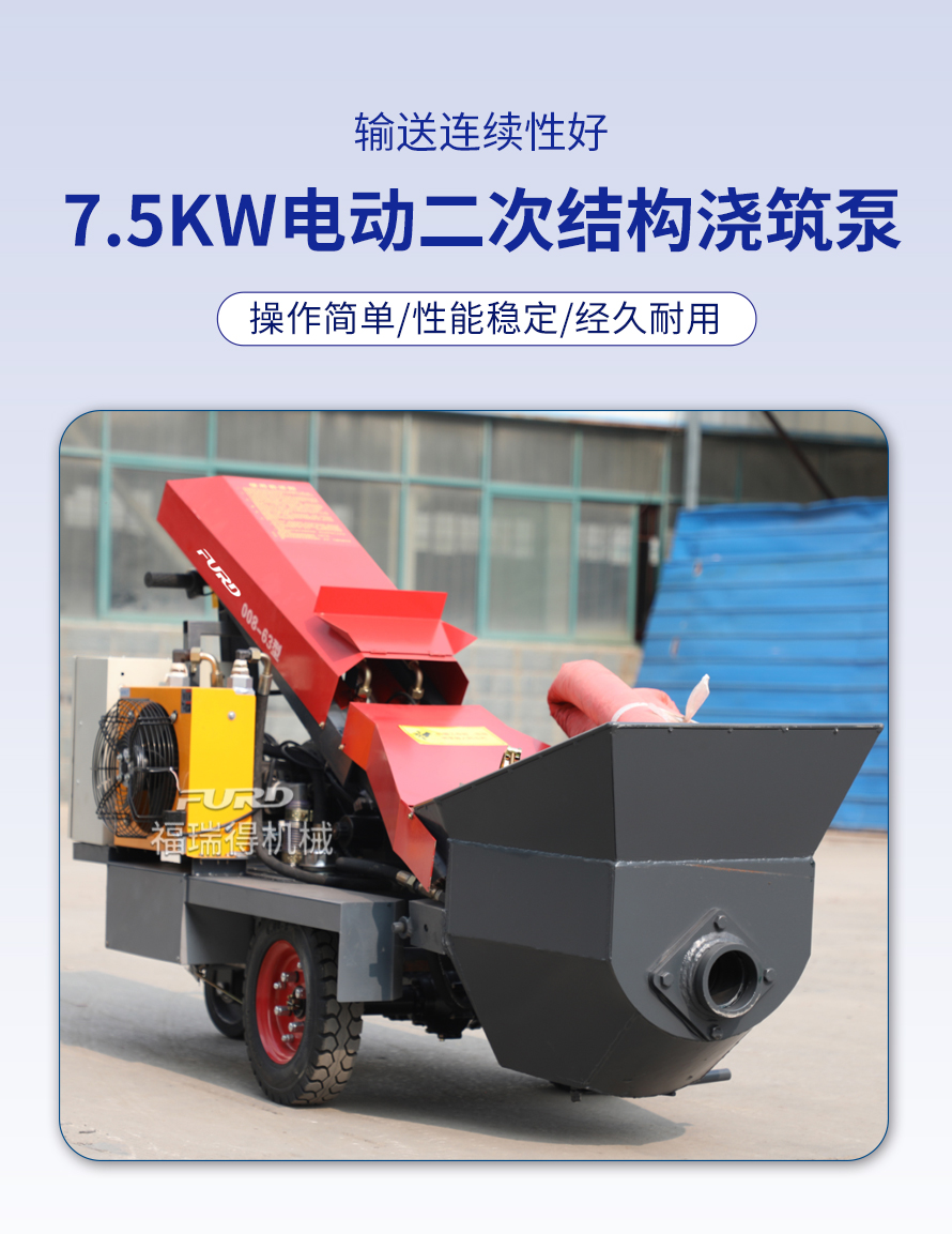 福瑞得二次結構澆筑泵適用于商品房、農村建房,打二次構造柱,圈梁等,是您澆筑的好設備。電機功率小,體積小,重量輕,料斗可升降,真正能提高您的施工效率,是人工澆筑的幾十倍。