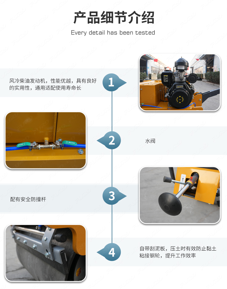 FYL-S600JH設(shè)計緊湊,機動性強,便于運輸,適合在狹小空間工作的多用途工人。是道路、人行道、橋梁和停車場壓實沙子、礫石、土壤和瀝青的絕佳選擇。高路緣間隙和近側(cè)間隙適應(yīng)工作鄰近的路邊和墻壁。