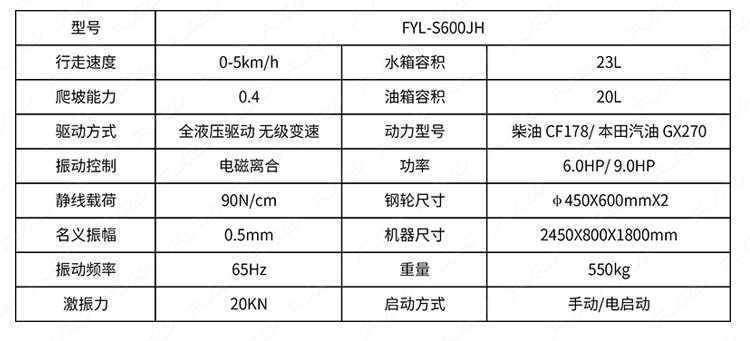 FYL-S600JH  手扶靜液壓雙鋼輪振動壓路機